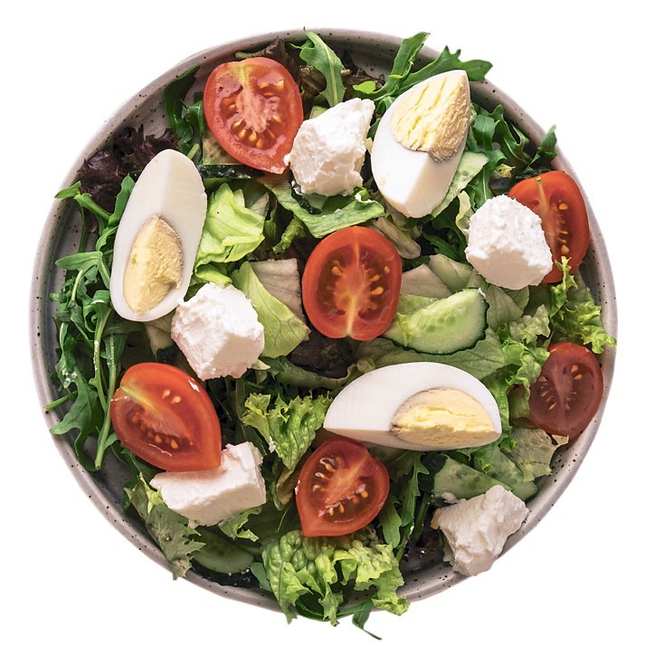 - Откажись от фастфуда и питайся сбалансированно. Здоровый рацион на 58% снижает риск инсульта, на 52% уменьшает вероятность депрессии и на 71% увеличивает шансы избежать слабоумия в пожилом возрасте. За основу можно взять средиземноморскую или MIND-диету. Их правила просты: больше овощей, зелени, фруктов, рыбы и других белковых продуктов – источника незаменимых аминокислот. Меньше жирного, жареного, мучного и сладкого.