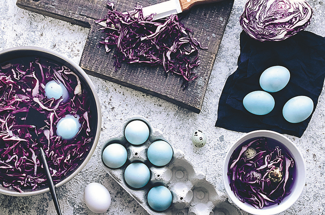 5. КРАСНОКОЧАННАЯ КАПУСТА. Она содержит пигмент под названием антоцианин, который придает овощу характерный темно-фиолетовый оттенок. Чтобы сделать краситель, нашинкуй один кочан, добавь 3 столовая ложка уксуса, прокипяти 30 минут. Готовый отвар остуди, опусти туда яйца примерно на час.