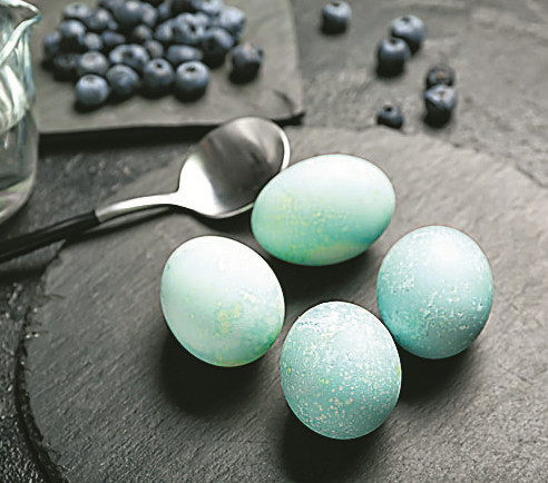 2. ЧЕРНИКА. Создает прекрасный голубовато-фиолетовый цвет. Чтобы сделать краситель, разомни чашку черники и вари ее в воде около 30 минут. Процеди смесь и добавь столовую ложку белого уксуса. Затем погрузи отваренные яйца в краску и дай им полежать не менее получаса.