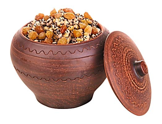Приготовление: Зерна замочить в холодной воде на 2–3 часа. Затем воду слить, переложить зерна в кастрюлю и полить водой с медом. Мак залить крутым кипятком, дать набухнуть и прокрутить в мясорубке. Орехи измельчить и обжарить на сухой сковороде. Зерна, мак и орехи смешать.