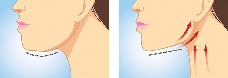 Шаг 1. Нанеси на кожу в области подбородка любое массажное масло и медленно втирай его подушечками пальцев в кожу. Далее разглаживаем кожу (не растягивая!) от середины подбородка по направлению к ушам.