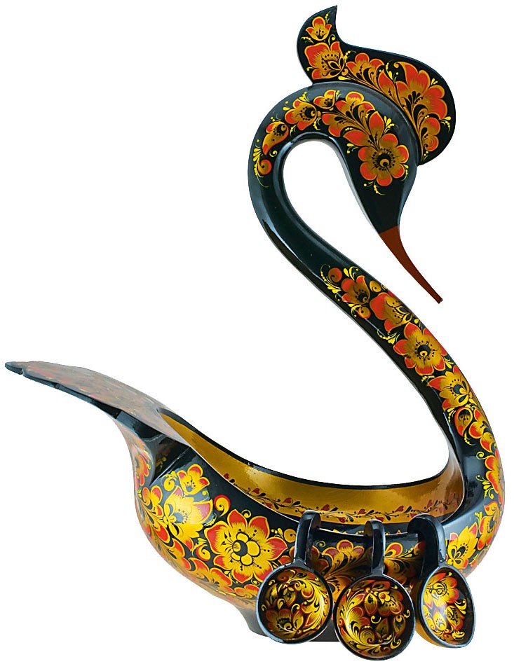 Хохломская роспись выполняется красной, зеленой и черной красками на золотистом фоне
