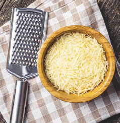 Натереть сыр для блюда – довольно трудоемкое занятие. Особенно если это сыр твердых сортов. Достань сыр из холодильника заранее – он нагреется до комнатной температуры и станет мягче. Теперь натереть его будет гораздо легче и быстрее.