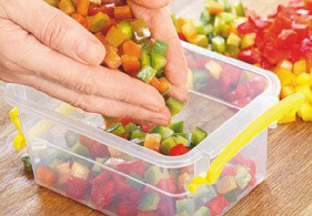 Сейчас речь не о том, чтобы закрутить банки с вареньем. Выиграть время можно, если заранее нарезать или натереть овощи для супов. В специальных контейнерах, например, цукини хранятся 3–5 дней, а морковь и лук – неделю. Особенно актуально это, если у тебя есть план питания и ты точно знаешь, какие овощи будут нужны в ближайшие дни.