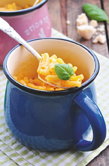 Молоко подогрей в микроволновке в большой кружке в течение минуты. Всыпь в него макароны и снова поставь в СВЧ на 3 минуты. Достань, посыпь тертым сыром и верни в микроволновку еще на минуту. В блюдо не нужно добавлять соль. Вкус от этого не пострадает.