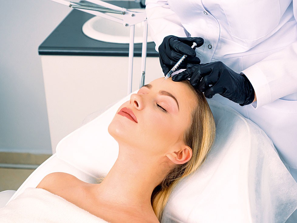► Ботулинотерапия. Межбровные морщины относятся к динамическим, то есть возникают из-за постоянного мимического сокращения мышц, приводящего к сморщиванию кожи и тем самым к появлению морщин. Причем эти мышцы достаточно сильные и объемные, за счет чего кожа на них хорошо «натянута» и не провисает даже при возрастных изменениях. Ботулинотерапия на время блокирует сигнал от мозга к мышце, и она перестает сокращаться. Соответственно, в расслабленном состоянии мышца «не тянет» кожу и морщины разглаживаются. В случаях, когда морщины залегают очень давно и глубоко, мышца расслабляется, заломы становятся меньше, но все равно может потребоваться дополнительное заполнение их гиалуроновой кислотой.