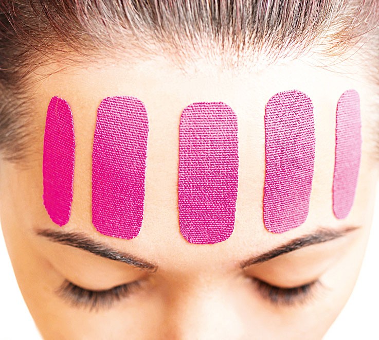 Тейпирование лица – один из самых современных способов разгладить кожу. Он предполагает использование специальных пластырей – тейпов – из натурального хлопка, которые клеятся на кожу (от 30 минут до 8 часов), фиксируют и натягивают ее. Эффект можно условно сравнить с инъекцией ботокса, когда благодаря длительной «блокировке» мышц она перестает заламываться, и постепенно пропадает привычка морщиться. Но тейпы нельзя наклеивать «на глазок»: существуют специальные техники. Например, фиксируя кожу, очень важно не перетянуть ее, потому что это приводит к растяжению кожи. Межбровные морщины в тейпировании называются «лобное брюшко», и чтобы избавиться от складок, нужно вертикально наклеить две короткие узкие (1 см) тейпленты. А если наметились морщины в уголках глаз, тейпы клеятся по касательной – от верхней части скулы к внешнему уголку брови.