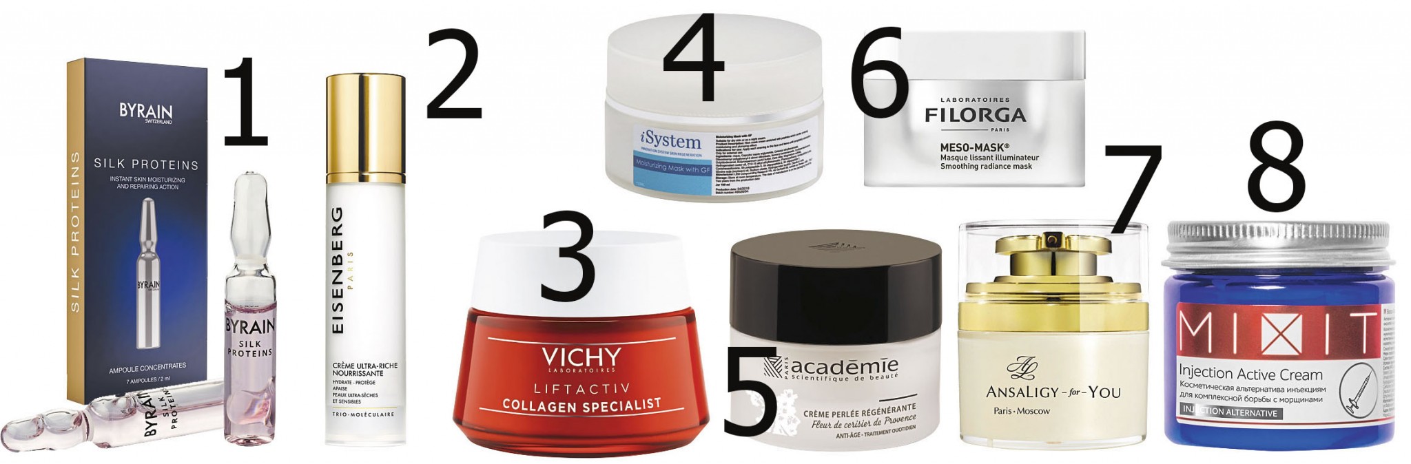 Выбирай правильную косметику. Например, моментально скрыть морщины помогут средства c flash-эффектом. Они заполняют складки кожи и визуально разглаживают ее. Если они еще содержат светоотражающие частицы, это станет бонусом: за счет игры света и тени усилят маскировку. Один минус – как только ты смоешь косметику, морщины проявятся снова. Чтобы восстанавливать кожу изнутри, нужно нормализовать выработку коллагена и эластина – белков, отвечающих за упругость. В этом тебе помогут кремы с коллагеном или пептидами, поддерживающие процесс омоложения.