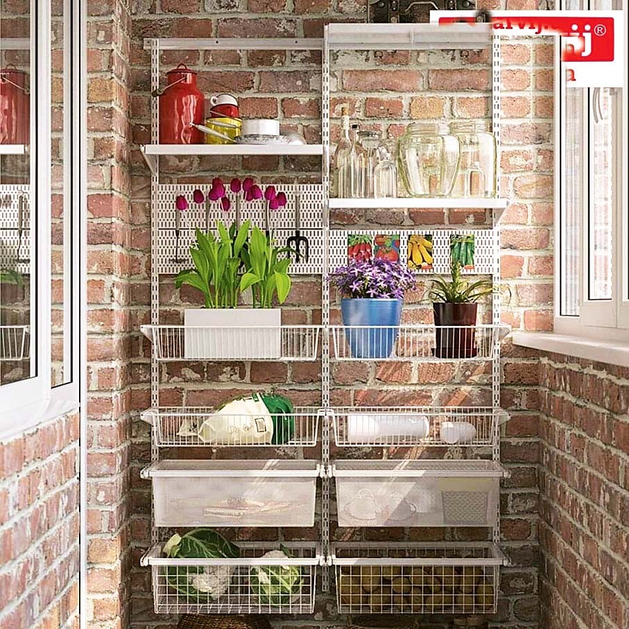Находим место. Кроме традиционного стеллажа с горизонтальными полками существует множество способов практично и творчески расположить вещи на балконе. Тут все зависит от количества и размеров тех предметов, которые ты планируешь здесь держать. Например, это могут быть подвесные крючки на стене или крепежи под потолком. Прояви креативность и смекалку, действуй смелее и изобретательнее. Тогда в голову могут прийти совершенно неожиданные и, главное, удобные и красивые решения.
