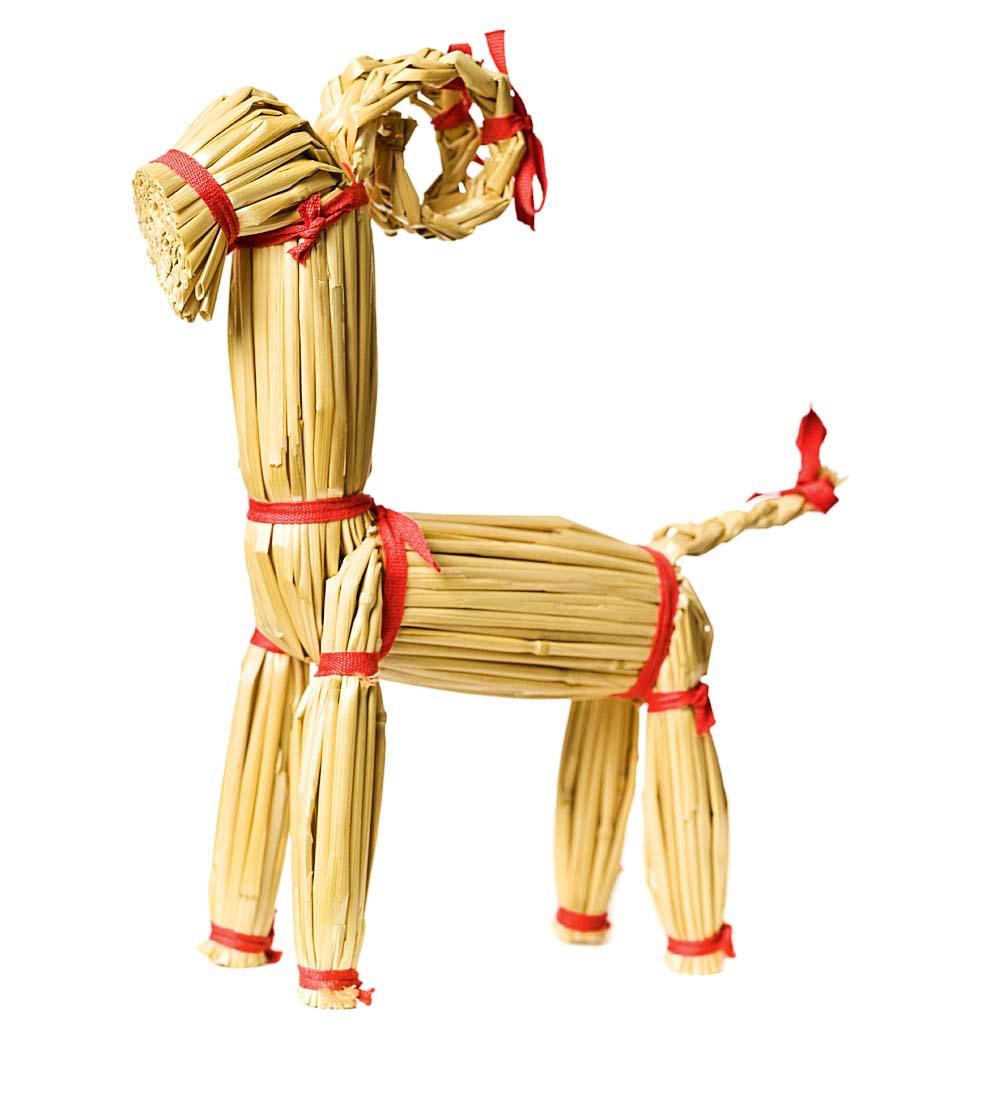 Раньше в Скандинавии подарки детям в Рождество приносил человек, наряженный козлом. Сегодня его место занял Санта-Клаус, а козел стал просто самым популярным праздничным украшением в домах шведов, норвежцев и финнов. По традиции, фигурку сказочного персонажа делают из соломы и ставят под елку.