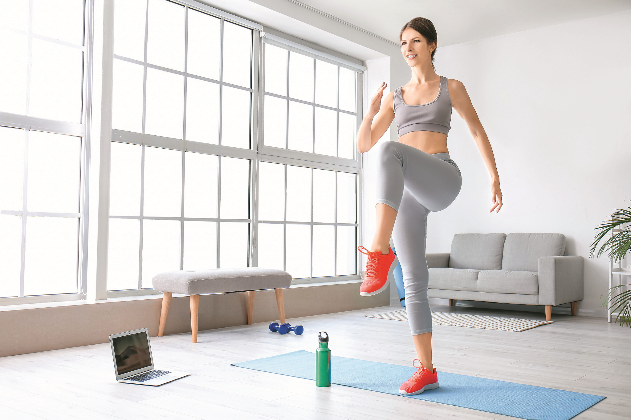 Шаг с высоким поднятием колена в быстром темпе – 50 раз. Упражнение на пресс «Велосипед»: 3 круга по 20 раз. Отдых – 30 секунд. Приседания с широкой постановкой ног: 3 круга по 30 раз. Приседания с узкой постановкой ног: 3 круга по 30 раз. Отжимания от пола с колен: 3 круга по 10 раз. Планка – 1 минута. Растяжка в свободной форме – 5 минут.