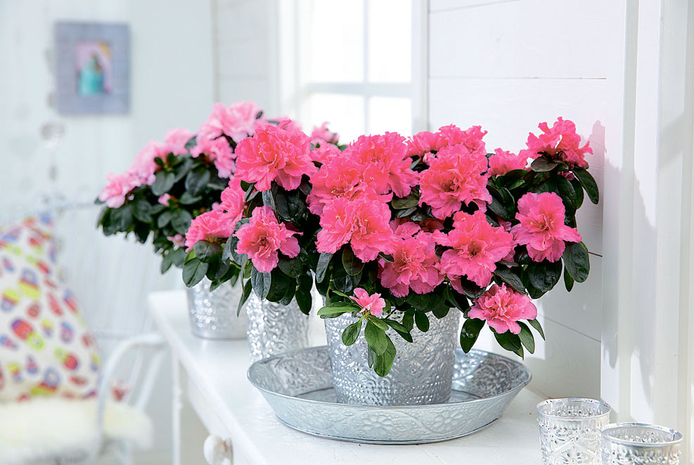 Это растение обильно цветет в зимние месяцы. Особенно эффектно смотрится на заснеженном окне. За красными и лиловыми бутонами порой даже не видно листьев. Азалия помогает настроиться на позитив. Снимает усталость глаз при работе за компьютером, в народной медицине ее лепестками лечат ячмень. Отпугивает домашних муравьев и моль.