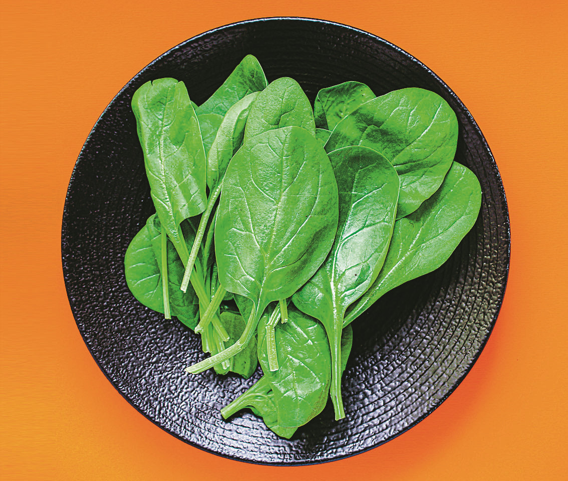 В шпинате много питательных веществ. Одна порция обеспечивает более 300% среднесуточной нормы витамина К, а также – более 160% и 40% среднесуточной нормы витамина А и витамина С соответственно. Витамины К и А поддерживают крепкие кости, а С способствует заживлению ран. В шпинате также есть фолиевая кислота, витамины группы В, железо, магний, калий, кальций.
