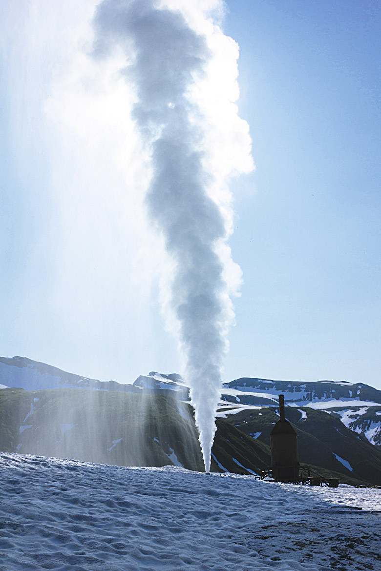 Его преимущество в том, что извергается он довольно часто – каждые 40-45 минут. Туристам нужно спуститься в долину реки Гейзерная и ждать представления на смотровой площадке, нависшей прямо над гейзером. И уж Большой не подведет! Он будет добросовестно набирать воду в своем «чане» и в назначенный час выбросит мощную струю кипятка в обрамлении облака пара. В высоту она может достигать 40 метров!