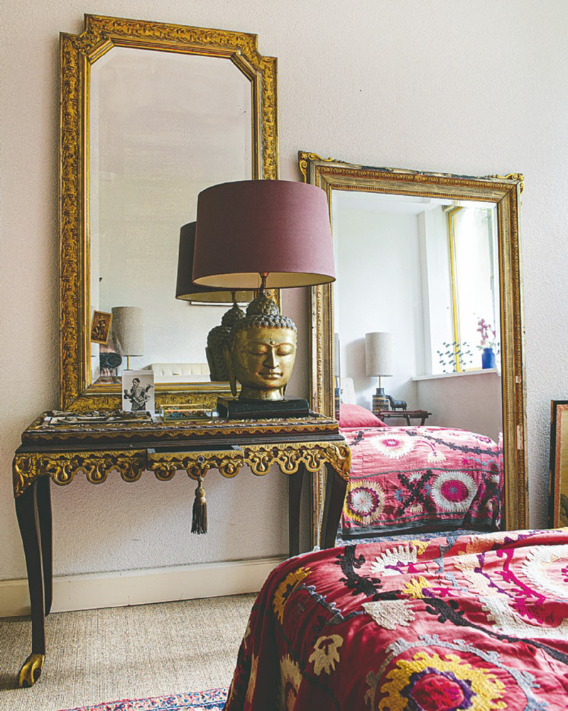 Этот стиль дает простор для художественных идей. Например, превращаешь в туалетный столик старую швейную машинку. А затем пускаешь в ход фантазию и любые подручные средства: пригодятся и раскрашенные ракушки, и осколки дорогой посуды, зеркал и даже кусочки кожи и красивых тканей. Если любишь рукоделие, привнеси в свой уголок нотку индивидуальности с помощью изделий handmade.