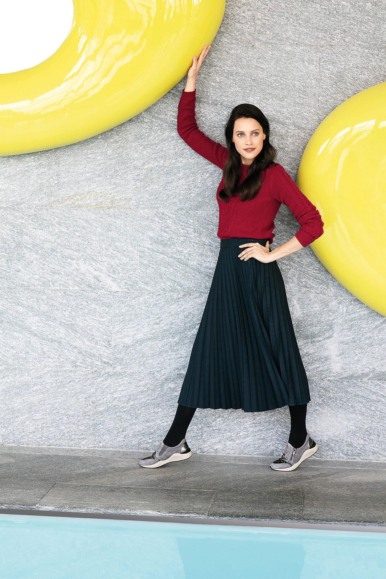 Дополни свой повседневный образ летящей плиссированной юбкой. Не бойся сочетать ее со спортивной обувью или обувью на плоской подошве. Чтобы наряд выглядел гармонично, выбирай юбку длиной чуть ниже колен. Модели темных тонов миксуй с ярким верхом и наоборот.