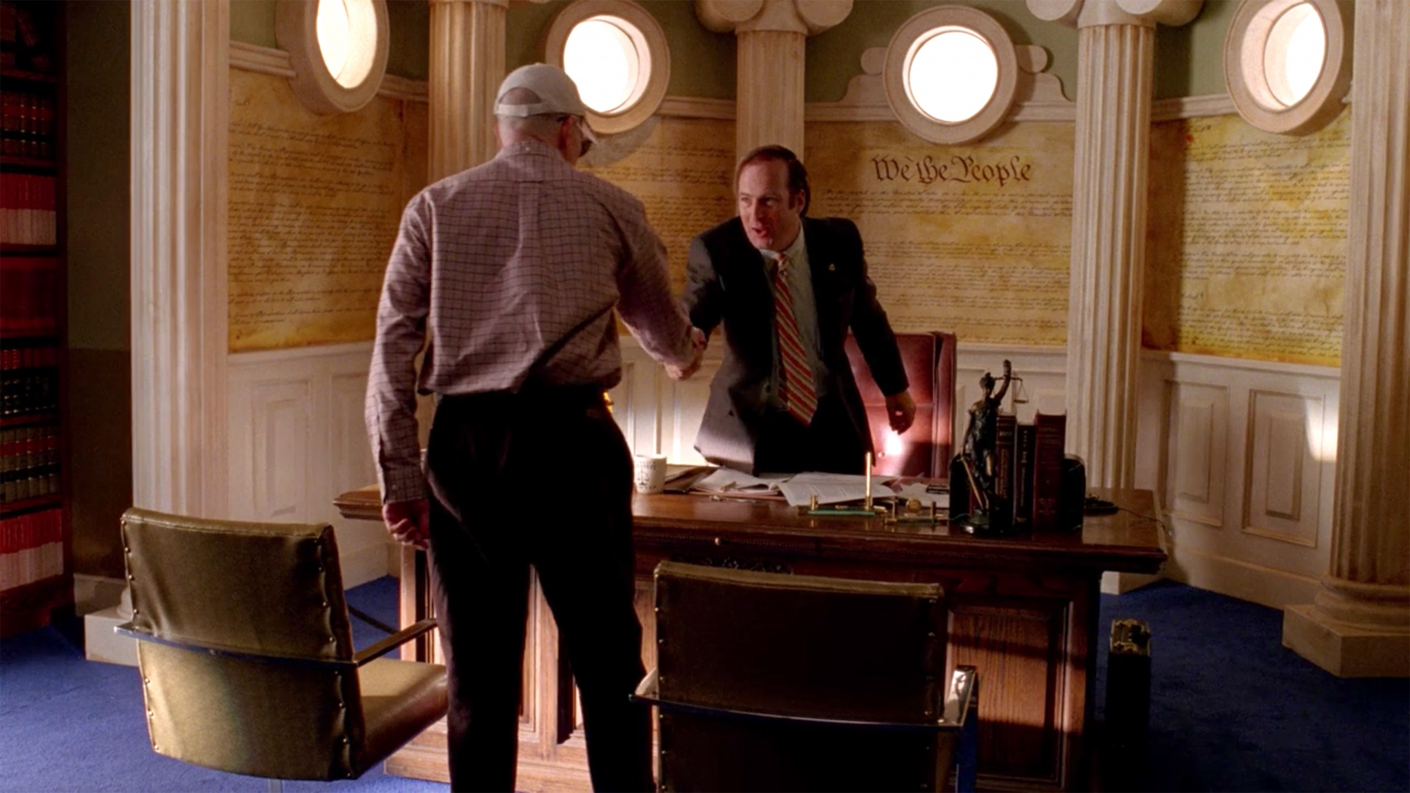 Боб Оденкирк (Сол Гудман): Сценарий был чертовски хорошо написан. Мне понравилась первая сцена, в которой он представляется. Это не было похоже на то, что мне приходилось делать раньше… Боже. там есть на что посмотреть. Я не мог поверить в то, как много там Сола. Я был ошеломлен и встревожен моей собственной уверенностью, с которой я сыграл этого персонажа. Я имею ввиду, я даже не понимал. что я делаю. Я просто говорил, надеясь, что все получится, и более чем наполовину был уверен, что мне скажут «Иди домой. Мы собираемся нанять настоящего актера».