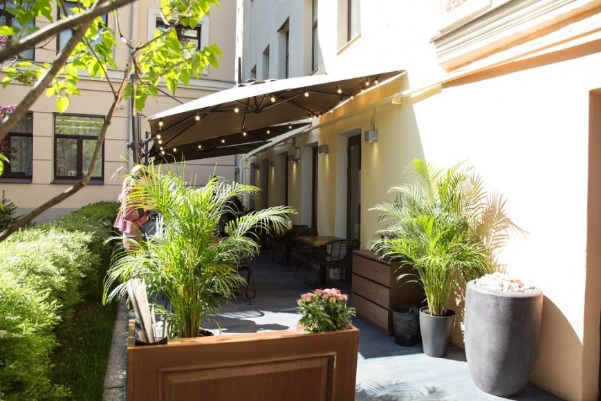 Одна из самых первых веранд в городе работает уже с апреля, а если точнее, то не закрывалась и зимой. С приходом тепла она лишь поменяла облик: вместо столов с индивидуальным огнем и катка поблизости теперь легкая плетеная мебель, вид на травяной сад и детская площадка в виде корабля рядом. Полная изолированность от шума дорог и городской суеты рождает ощущение умиротворения, как будто ты находишься на своей личной даче, но в центре Петербурга. Летом в пятницу и субботу веранда работает до утра, и, самое главное, здесь можно полноценно поужинать — всю ночь действует специальное меню от тандема поваров Руслана Закирова и