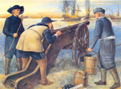 Бой с польскими кораблями в устье реки Висла, 1628 год. Шведские артиллеристы и король Густав II Адольф