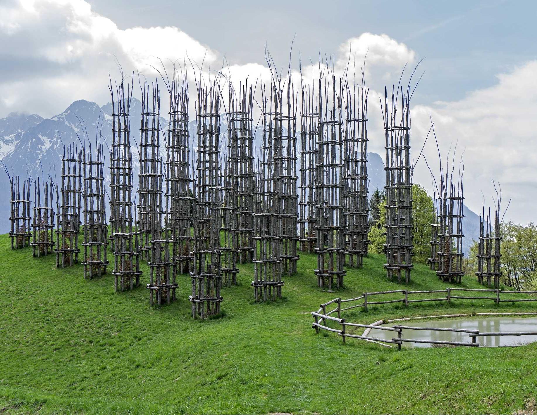 Эти насаждения на итальянском именуются Cattedrale vegetale – Растительный собор. Работу духовного садовника взял на себя художник Джулиано Маури, приверженец «природной архитектуры». Он был великий мастер по части придумок того, как заставить деревья, кусты и травы расти по Великому Плану, создавая естественные стены и фундамент. Растительный собор заложен в 2002 году, а окончательно сформировался в 2010-м, через год после смерти автора.