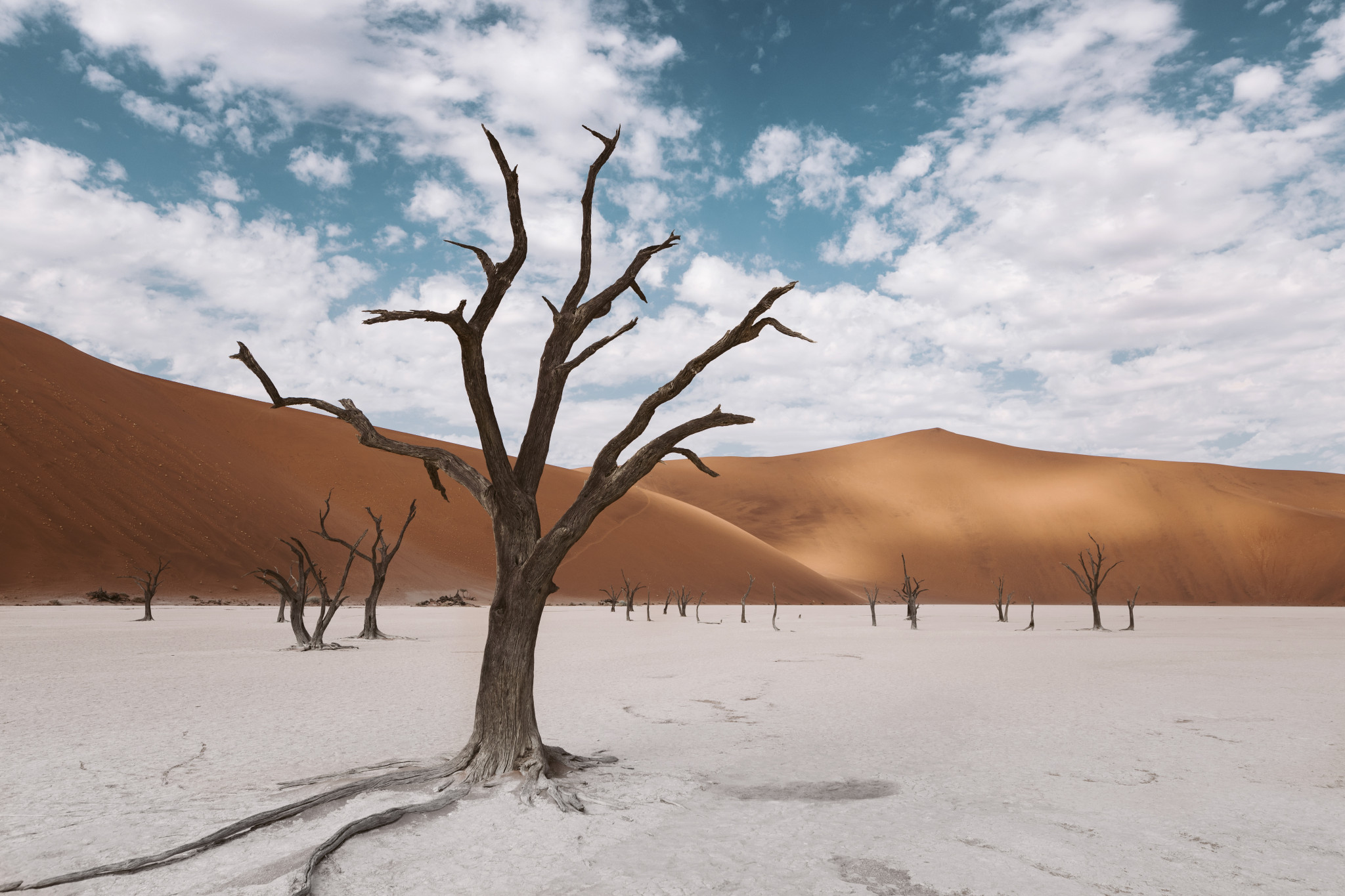 Кусок пустыни некогда затопила река, после чего образовалось глиняное дно, а на мелководье принялись расти кусты с деревцами. Вода испарялась, корни деревьев выходили на поверхность в поисках влаги. Когда вода ушла окончательно, деревья умерли, но остались стоять поверх