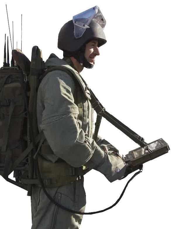 Что такое ДУМ? В данном случае это не популярная компьютерная стрелялка 1990-х годов, а дистанционно управляемая машина. Хотя кое-что общее с той игрой есть. Через шею оператора перекинут ремень, на котором висит нечто вроде планшетного компьютера с плоским экраном. Только вместо мыши и клавиатуры здесь джойстики под обе руки и кнопки, а на экран проецируется изображение с видеокамер кругового обзора машины. Привычного игрокам режима, позволяющего видеть героя со стороны, конечно, нет. Да и вместо мягкого компьютерного кресла под задницей у оператора за спиной висит тяжелый рюкзак с радиостанцией и аккумуляторами – во время работы ему предстоит таскать эти 17 кг. Но саперы не жалуются: идти следом за «гусеничным миноискателем» на расстоянии до километра намного полезнее для здоровья, чем искать мины самому непосредственно на минном поле.