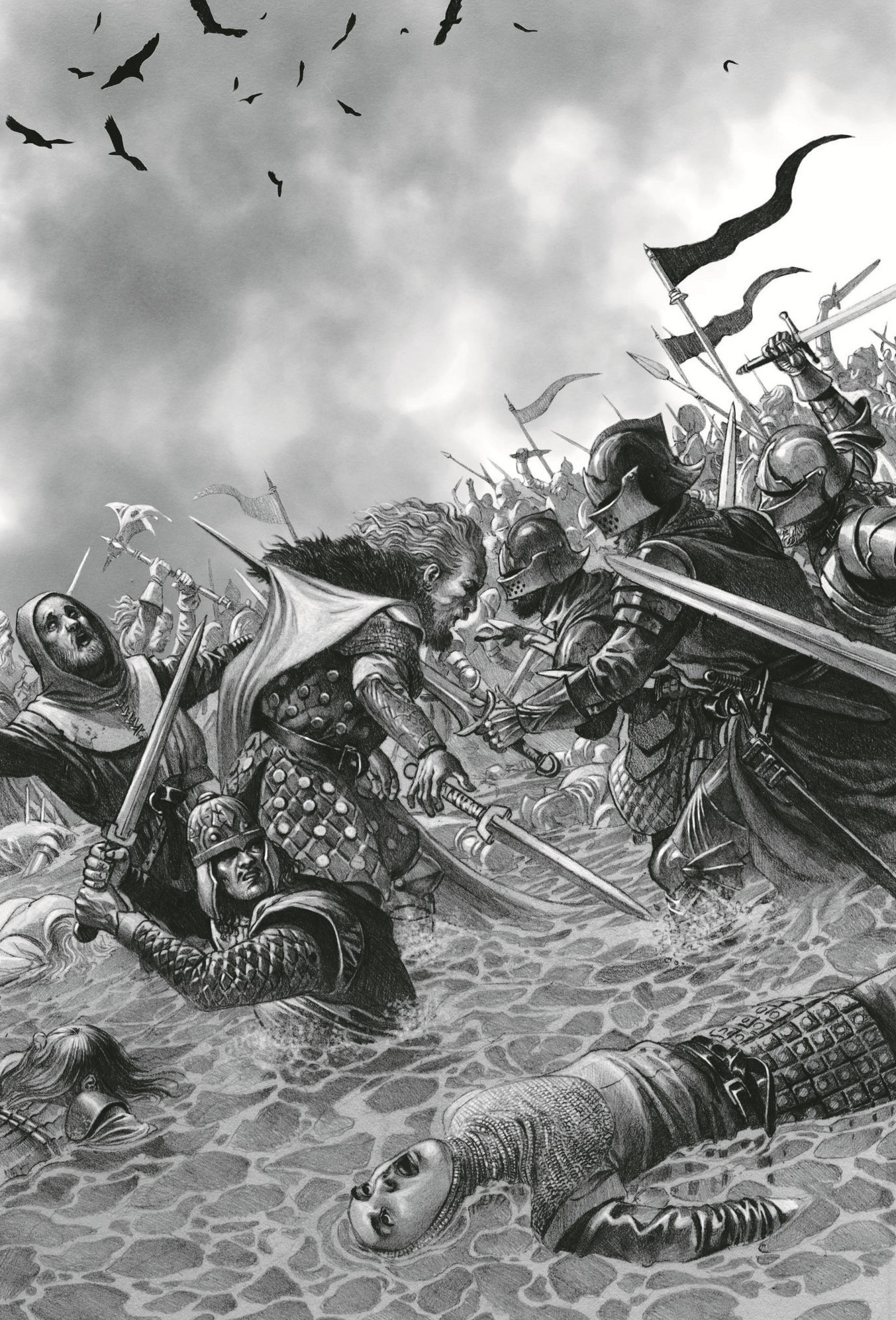 С этим согласились далеко не все Железные Люди. Жрецы, собравшись на Старом Вике под ребрами морского дракона Нагги, увенчали короной из плавника своего собрата, босоногого Лодоса, объявившего себя сыном Утонувшего Бога и чудотворцем. На Большом Вике, Пайке и Оркмонте явились свои претенденты, и все они больше года сражались между собой на суше и на море. Говорят, будто у островов плавало столько трупов, что кракены сотнями стекались туда.