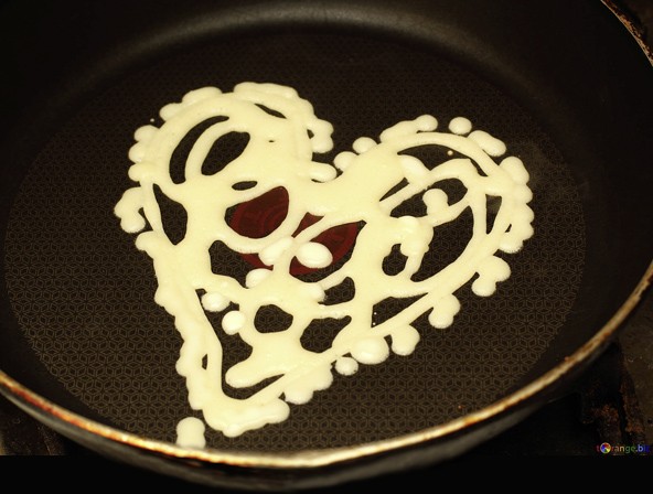В приготовленную смесь добавь 100 г крахмала и еще раз все перемешай, чтобы не было комков. Затем вылей смесь в пустую бутылку из-под кетчупа с маленьким отверстием. Сковородку смажь маслом, раскали погорячее и лей на нее смесь, выписывая узоры. Симметрии сначала не получится, будет больше похоже на путь Петрова и Боширова, ищущих собор в Солсбери. Но потом выйдет что-то похожее на вологодские кружева. Переворачивать надо широкой лопаткой, чтобы не порвать.