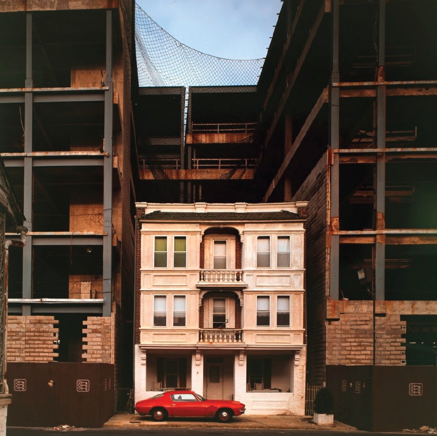 Эта фотография была сделана в 1991 году, когда домик Веры Кукинг уже 13 лет стоял в окружении гигантского ржавевшего остова несостоявшегося казино. История этого противостояния могла бы послужить иллюстрацией к игре «Монополия», тем более что произошла она в Атлантик-сити, том самом городе, улицы которого увековечены на карточках легендарной игры. В 1961 году семейство Кукингов приобрело свой домик мечты – в пяти минутах ходьбы от океана и знаменитой набережной Бордуок*. Десять лет прошло в счастливом осознании, что сбережения были вложены невероятно удачно. Цена недвижимости стабильно росла, часть комнат в доме можно было очень выгодно сдавать, улочка, продуваемая океанским бризом, казалась идеальной гаванью, где можно спокойно встретить старость. Однако не тут-то было. В 70-х годах соседи неожиданно заволновались: миллионер Боб Гуччионе, издатель знаменитого мужского журнала, решил скупить и снести все дома в округе, чтобы построить гигантское казино. Поначалу, конечно, никто не хотел уезжать. Но Гуччионе был хорошим игроком в «Монополию» и сумел в конце концов найти подход ко всем, кроме непреклонной Веры Кукинг. Говорят, торги дошли аж до миллиона долларов, однако Вера так и не согласилась покинуть свое любимое кресло-качалку у окошка. В 1978 году из этого окошка ей предстояло наблюдать, как знакомая улица превращается в пыль, а вокруг ее дома, заключив его в стальные объятия, вырастает железобетонный монстр. Однако через два года мольба или проклятия, доносившиеся из белого домика, были услышаны: стройка, как по мановению волшебной палочки, встала. Гуччионе переоценил свои возможности: ему не удалось получить лицензию на казино и даже найти спонсоров на завершение амбициозного проекта. Не такая уж редкая в мире шоу-бизнеса ситуация.
