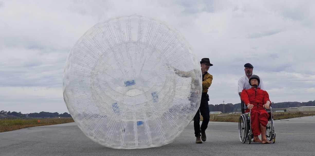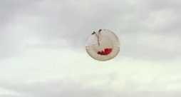 Испытуемого планировалось сбросить с высоты 300 метров. На самом деле этот эксперимент не так абсурден, как кажется на первый взгляд. Дело в том, что надувной шар не только смягчает приземление человека, но и за счет большей площади падает с меньшей скоростью, чем обычный сумасшедший, прыгнувший с высоты 300 метров без парашюта. В итоге краш-манекену довелось полетать в небе Калифорнии в зорбе, в обертке из пузырчатой пленки, и в зорбе без всякого снаряжения. Увы, по результатам датчиков ни один из этих способов не был рекомендован разрушителями для дальнейшего использования в десантных войсках. Жаль, конечно. Армия десантников, сбрасываемая на противника в зорбах, на наш вкус, смотрелась бы неплохо!