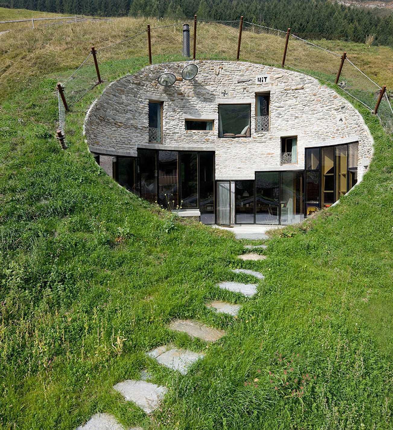 Вкопанный в лужайку дом наводит на мысль, что хоббиты строили бункер на случай ядерной войны. Найти эту землянку можно в швейцарском поселении Вальс, и в некотором смысле это действительно убежище, но духовное. Хозяева (не хоббиты!) поставили перед прорабом задачу соорудить такое здание, из окон которого не было бы видно осточертевших отелей, трактиров и туристических бунгало. Домик сдается за 2800 евро в неделю, и в его недрах прокопан индивидуальный пешеходный тоннель до деревни. А туристов в окрестностях и вправду перебор – виной тому термальные ванны, которые лечат от всех болезней, кроме мизантропии.