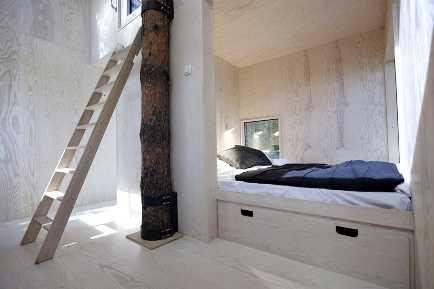 Теперь мы мысленно перенесемся на север Швеции, где посреди леса гнездится полностью зеркальный куб, в котором отражаются все надежды и чаяния человечества (наверняка архитектор что-то такое имел в виду – не мог же он просто задумать тупой зеркальный куб!). Габариты зеркальной хаты – 4 х 4 х 4 м, каркас сделан из алюминия, а пробираться в дом надо по 12-метровой лестнице. В постройке три комнаты, в качестве особого изыска – ствол дерева посреди интерьера. Домик гнездится на территории комплекса Treehotel и сдается туристам за бешеные 500 евро в сутки. Эльфам скидка, а вот гномов не пускают, так что даже не пытайся.