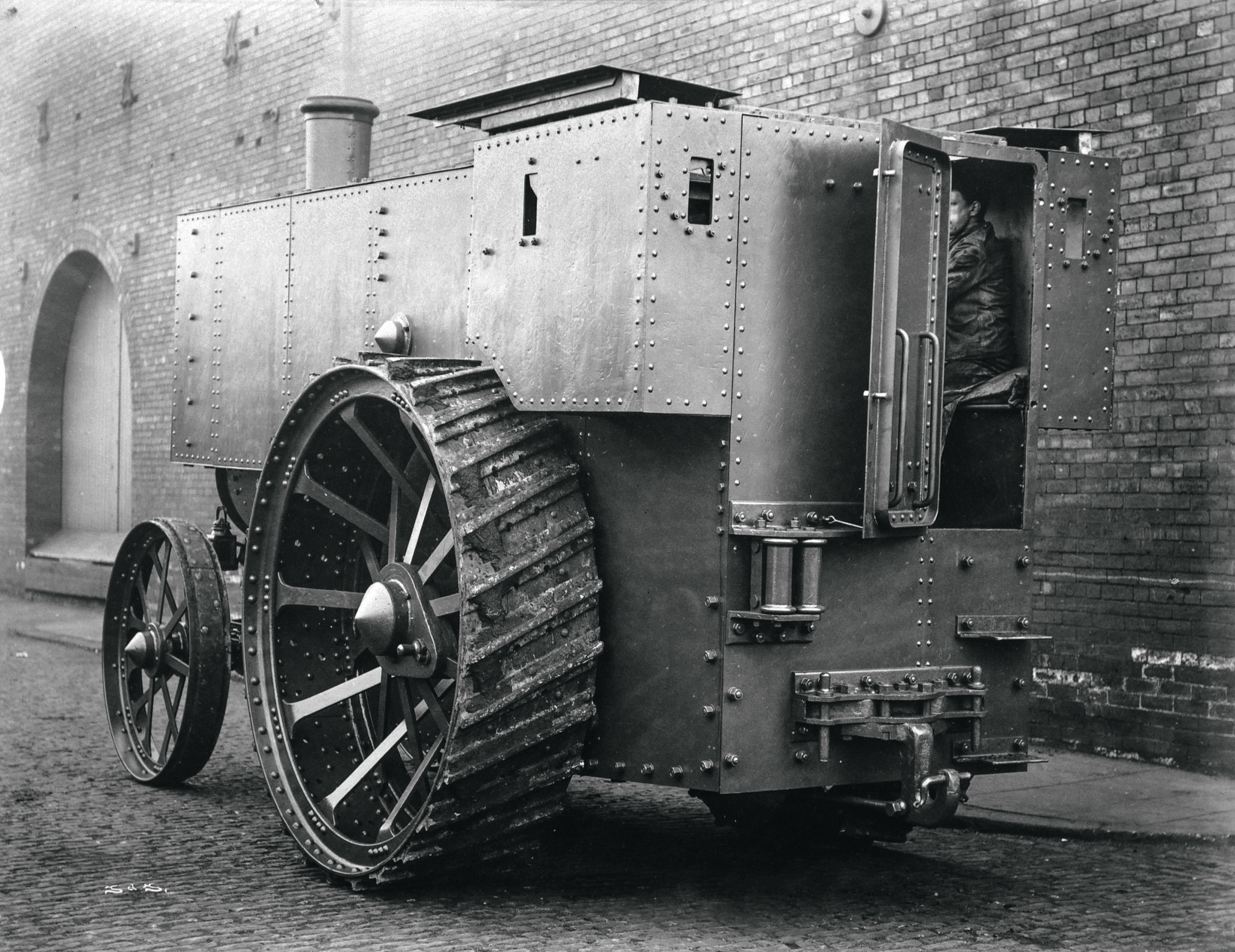 Успешный опыт создания бронированных «вагенбургов» в Великобритании попробовали применить в новой реальности. Поскольку изрытое воронками и траншеями поле боя далеко не то же самое, что африканская саванна, новые «наземные поезда» должны были ездить уже на гусеницах. Правда, эпоха дредноутов дала им и новое название – «наземные корабли».