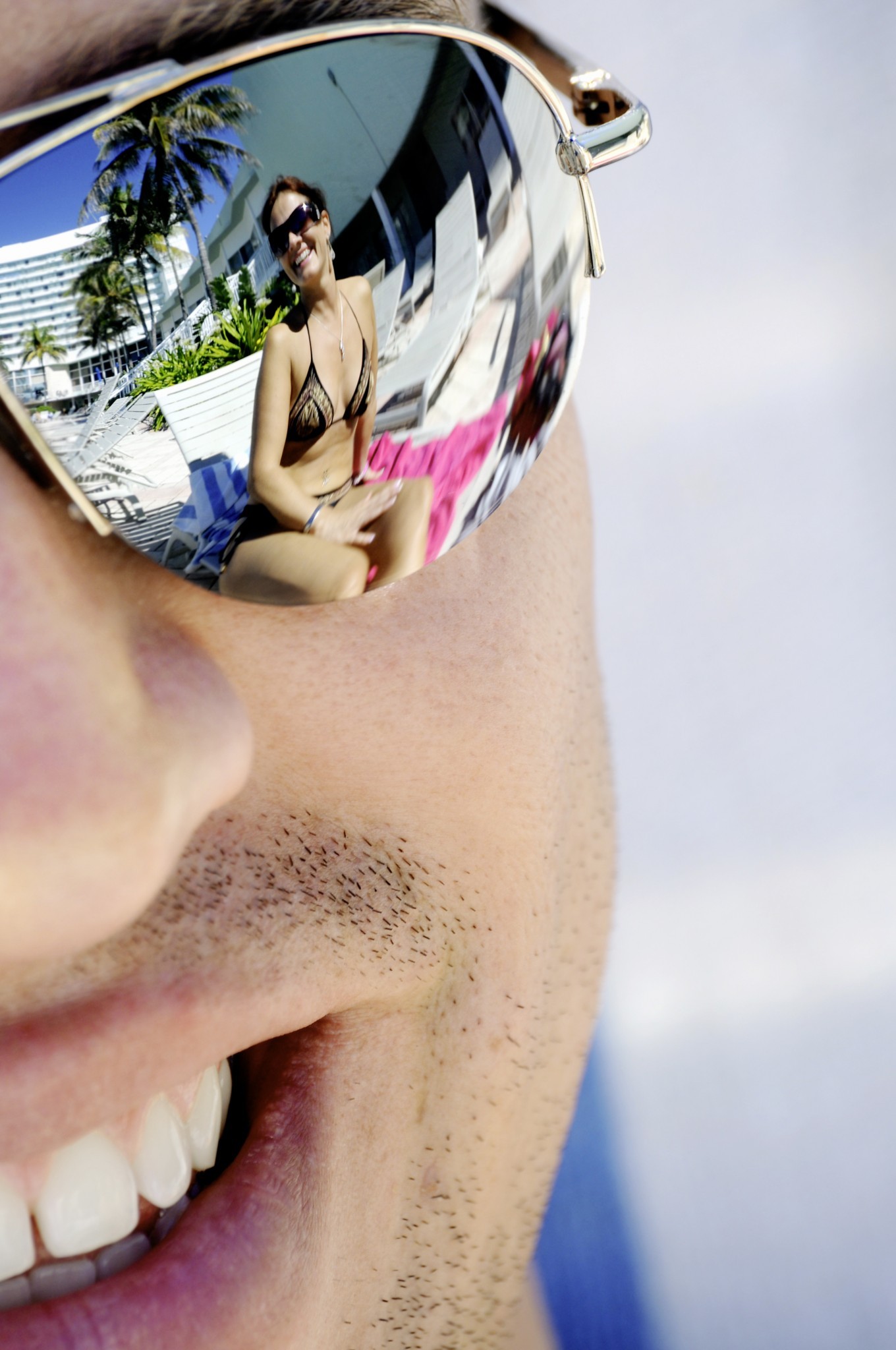 Самым интересным предметом для съемки может оказаться зеркало, и чем оно больше, тем лучше. Интересный̆ прием: в природном ландшафте заслони часть себя зеркалом так, чтобы отражение сливалось с твоим задним фоном. Получится, будто ты исчез. Если под рукой не оказалось трехстворчатого трюмо, то используй любые отражающие объекты: тонированные стекла автомобилей, витрины, солнечные очки.