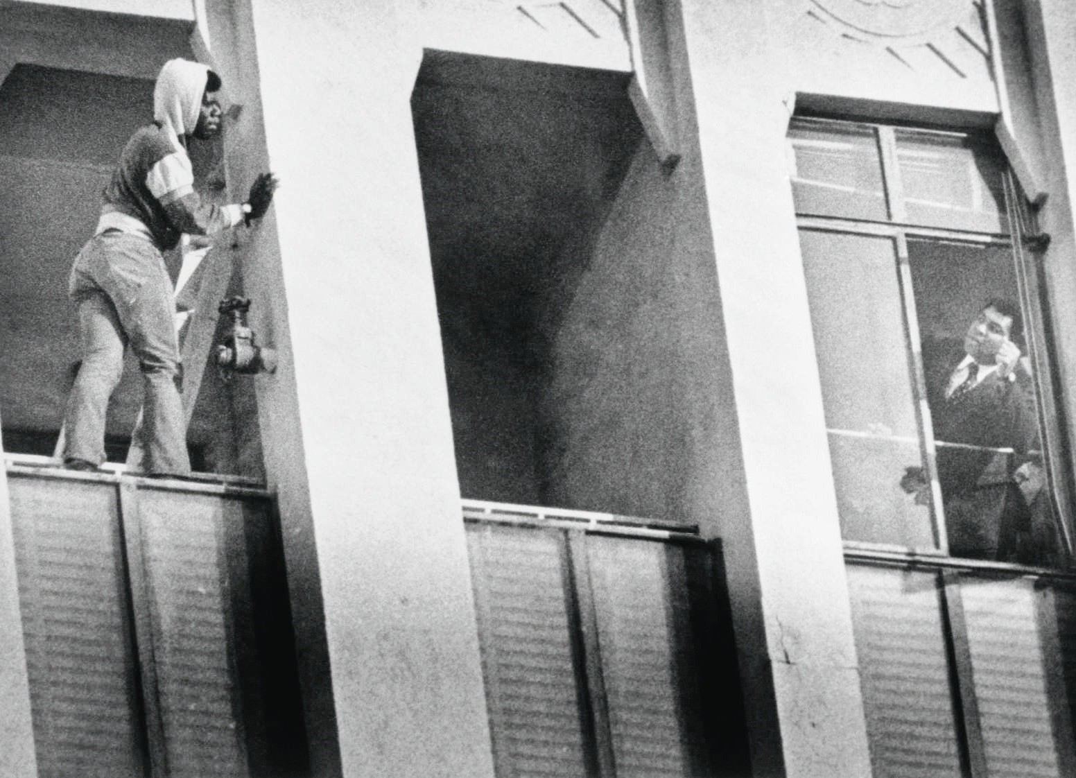 Человека справа совершенно нет нужды представлять читателю. Каждый знает, кто он. Выдающийся спортсмен, боксер тяжелой весовой категории Мохаммед Али. Глупо про него рассказывать! Его настоящее имя – Кассиуc Клей. Родился в 1942 году и ни разу за 38 лет не был повержен на ринге. Так, молчим, ты и сам все это знаешь. Он одержал 56 побед, из них 37 – нокаутом. И это еще не все. Однажды... Вот про однажды и поговорим. 19 января 1981 года зеваки в Лос-Анджелесе стали свидетелями того, как Али высунулся из окна девятого этажа и завел разговор с бедолагой, который норовил прыгнуть вниз. Переговоры удались: в какой-то момент несостоявшийся суицидник подпустил к себе боксера и позволил себя увести вглубь здания. До этого полиция три часа пыталась сделать то же самое, но успеха добился лишь проходивший мимо чемпион с убедительной харизмой.