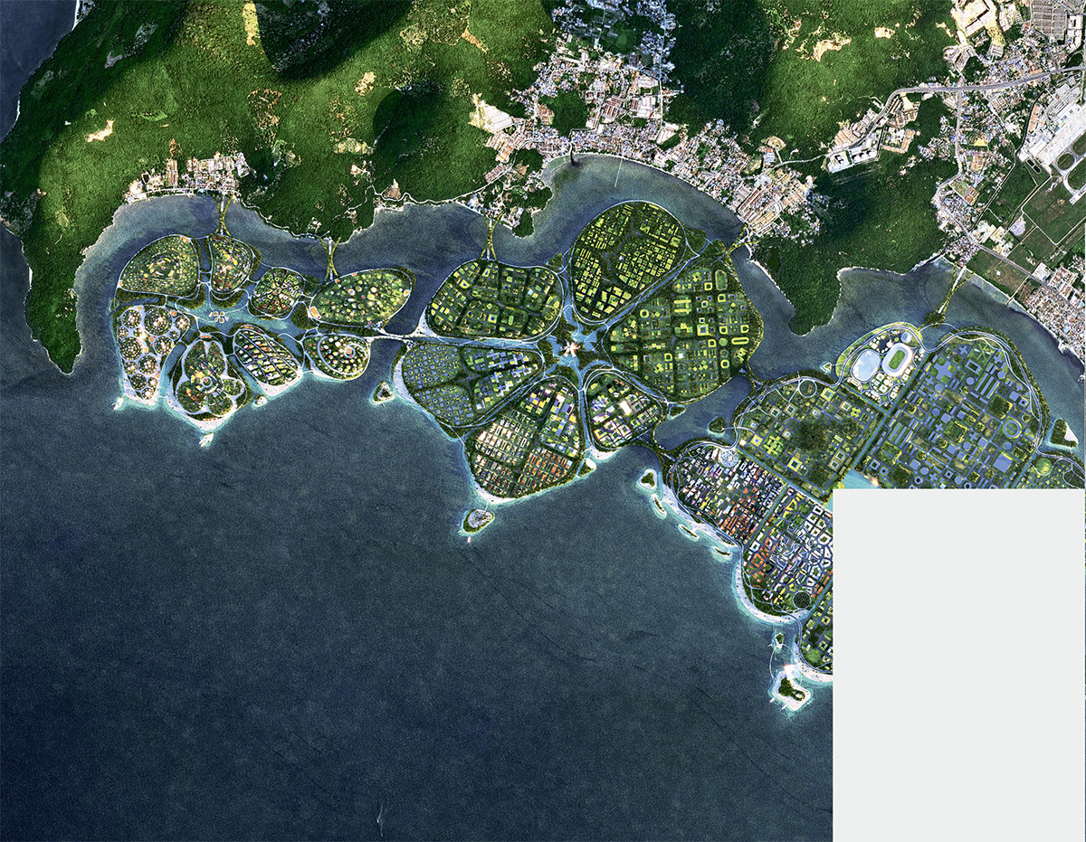 Это проект даже не города, а целого архипелага из трех искусственных островов у берега Пенанга. Каждый из них рассчитан на 15 000–18 000 жителей, но при проектировании думали не только о людях — острова должны стать эталоном сосуществования человека и природы: только экологичные материалы, никаких машин, обилие зелени (причем не парков, скверов и бульваров, а настоящих мангровых лесов, населенных дикими животными). Чтобы острова не нарушили водную экосистему, проект предусматривает отдельную работу по сохранению биоразнообразия морских обитателей — вокруг каждого острова будет создан экологический буфер. На берегу — правительственные учреждения, цифровой кластер, отданный исследователям новых технологий, и деловые центры. Работать обитатели островов будут в пешей доступности от домов.
