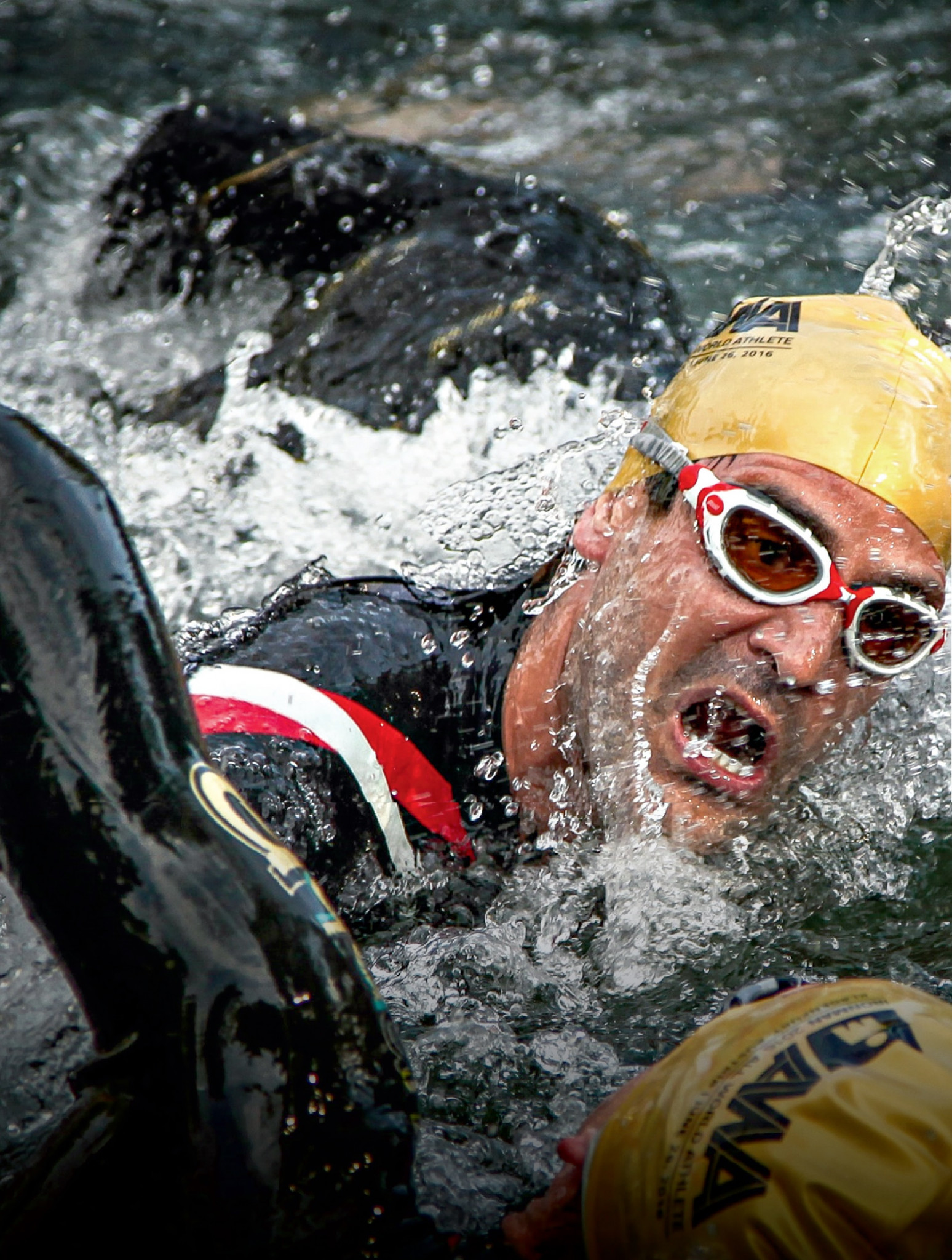 “В Руанду прилетело не очень много спортсменов. Кого-то пугала страна, где недавно был геноцид, кого-то — сложны й перелет. Но среди тех, кто приехал, хватало звезд триатлона. За первые пять мест шла суровая борьба. Кстати, из-за того что участников оказалось немного, я пропустил старт. Заплыв начинают по готовности, и я решил выждать пять минут. Выхожу — все уплыли. Первый раз в жизни стартовал один. Выплыл, жена крикнула, что проигрываю всего 50 секунд. На велоэтапе трасса была технически сложной, я боялся и осторожничал. Отставание росло, но потом понял: надо идти ва-банк. Стал агрессивнее проходить спуски и начал подъедать лидеров. Тут-то и за кралась мысль, что гонка может получиться удачной. К беговому этапу я был уже вторым и отставал от лидера только