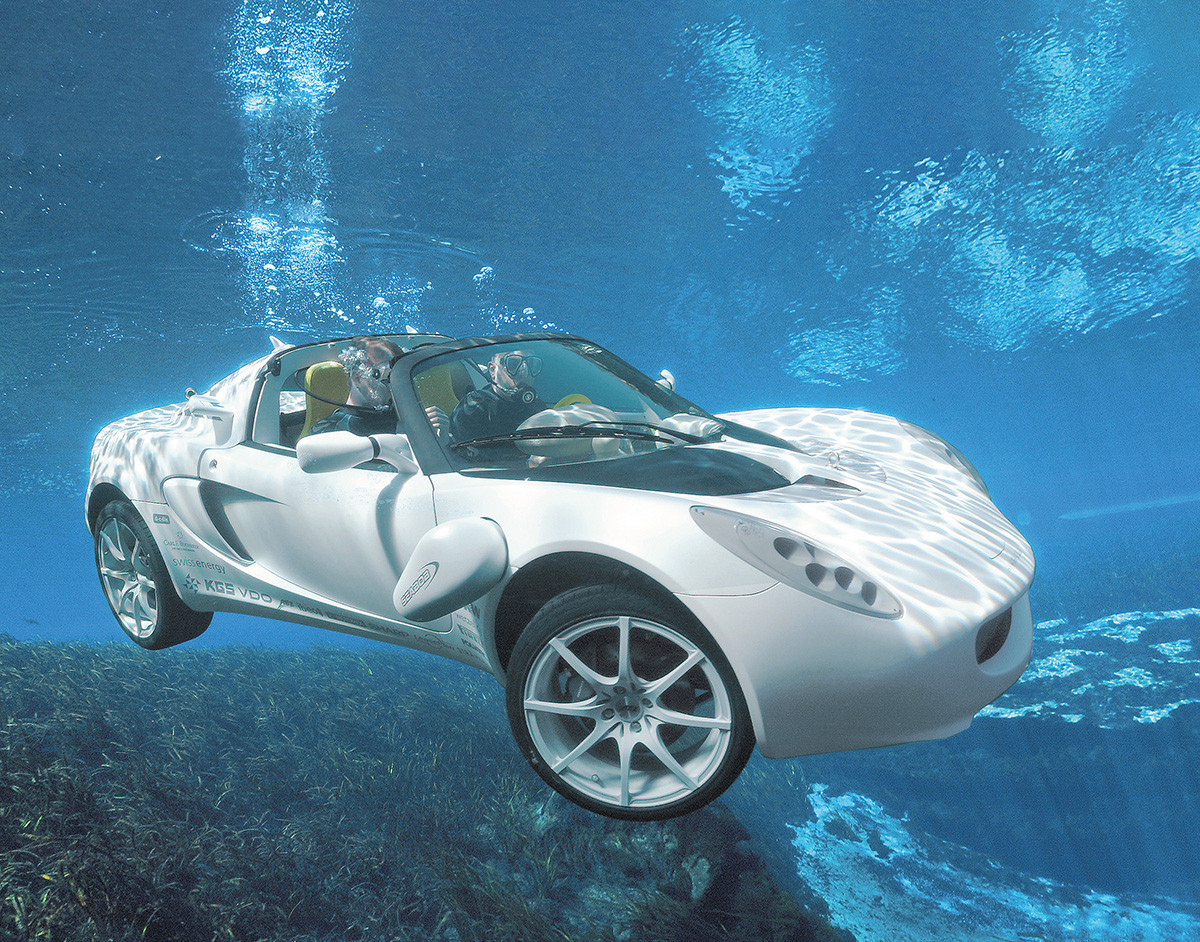 Секрет успеха швейцарской инженерной фирмы — в редком таланте шефа Франка Риндеркнехта генерить идеи из ряда вон. Причем во-о-он туда, в крайности. Концепты Rinspeed изумляют: раздвижной, прозрачный, меняющий кузова. Или, пожалуйста, бондовский, по мотивам белого спорткара Lotus Esprit, который превращался у агента 007 в подлодку. Пока Rinspeed sQuba не нырнул, его легко принять за лотусовский Elise. Нет, это другое! Электромобиль с кормовыми винтами, водометами, емкостью для воздуха и двумя масками. Родстер-дайвер погружается на десять метров и плавает в темпе З км/ч. Чтобы утянуть вниз воздушный пузырь в закрытой кабине, пришлось бы утяжелить конструкцию до двух тонн, и тогда привет динамике на асфальте. Поэтому кузов открытый. Плюс безопасность: родстер проще покинуть. Оставшись без экипажа, sQuba сам всплывает и выезжает на берег. Увеличенная буква в названии — реверанс киношному Кью.