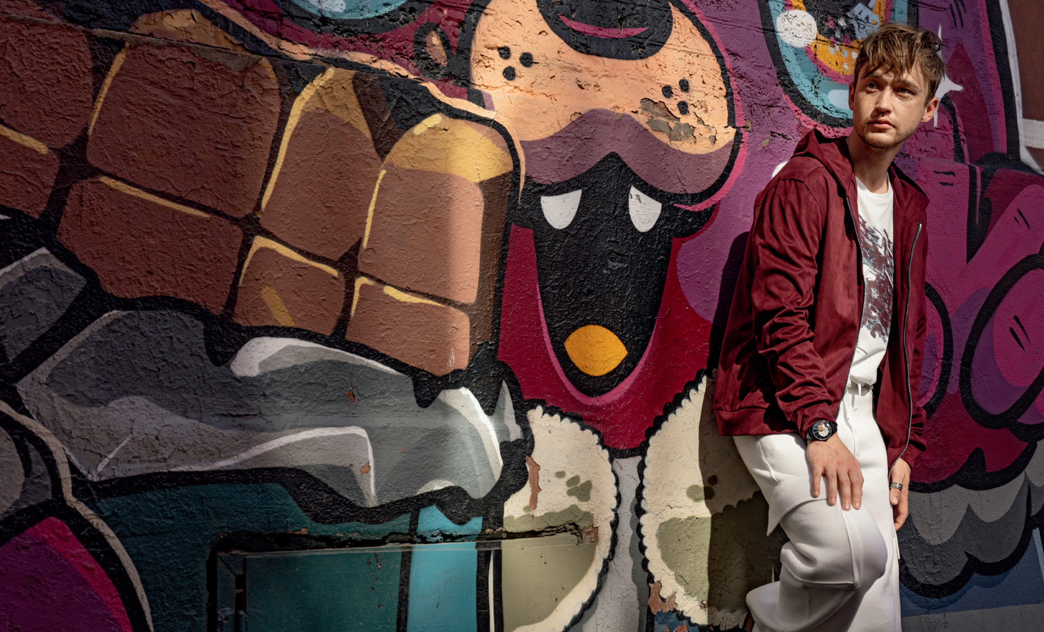 Снимать осеннюю моду в 30-градусную жару — то еще испытание, но Эльдар стойко вынес его и даже сохранил силы на интервью.