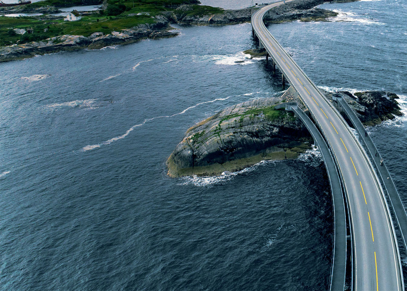 Норвегия — страна уникальных дорог: живописный серпантин “Лестница троллей”, 25-километровый Лердальский тоннель и, конечно, проложенная прямо в океане Атлантическая дорога. Это двухполосное шоссе, связавшее несколько островов, сами норвежцы называют строением века. Его прелесть в необычных мостах, одни из которых стелются практически по водной глади, а другие взлетают вверх, подобно американским горкам. Самый известный из них, “Пьяный мост”, по замысловатой траектории поднимает путешественников на 23 метра. На пути есть 4 смотровые площадки, с которых можно полюбоваться океаном. От волн они защищены стеклом, чего нельзя сказать о самой дороге — до проезжающих по ней машин регулярно долетают соленые брызги.
