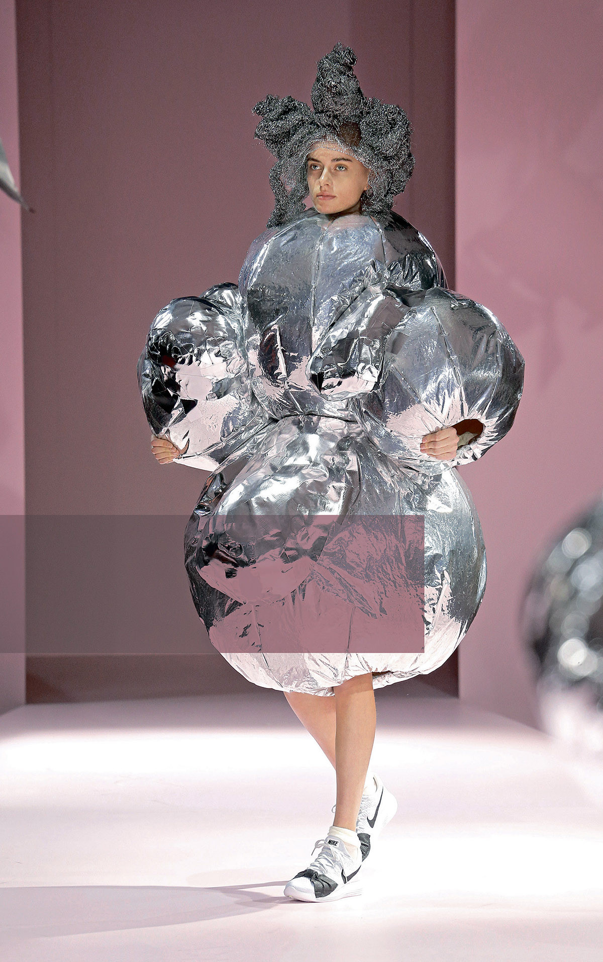 Совсем другое из космической темы извлек Пако Рабан. Француз баскского происхождения использовал немыслимые материалы: алюминиевые пластины, стекло, пластик, перья. Его работы представляли собой микс между средневековьем и футуризмом: вместо нитки и иголки инструментами кутюрье были проволока и клей, а его героиней стала современная Жанна дʼАрк, женщина-воительница — кстати, именно Рабан придумал костюмы для культовой “Барбареллы” с Джейн Фондой.