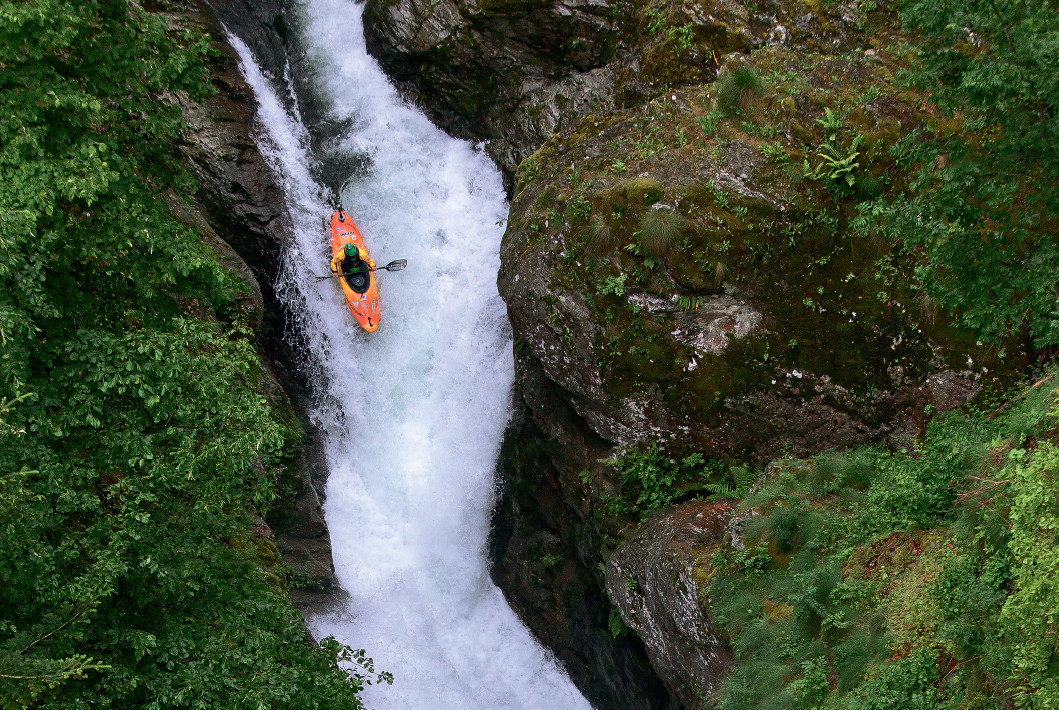 “Один из сильнейших российских каякеров Алексей Лукин проходит каскадный водопад на реке Сорба. Вайтвотер каякинг, или сплав по бурной воде, — один из самых сложных видов экстремального спорта. В экспедициях по Кавказу, Средней Азии, Скандинавии, Европе и Африке мы сняли девять фильмов о людях, посвятивших жизнь каякингу”.