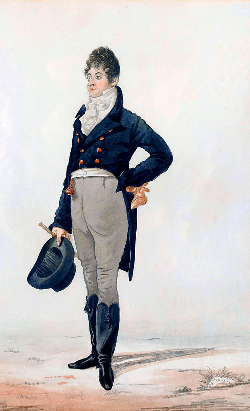 Английский денди эпохи Регентства — один из главных мифов в истории мужской моды. Но вот то, что именно он двести лет назад заложил основу той одежды, которую мы с вами носим по сей день, — истинная правда. Браммелл создал новый по тому времени стиль: костюм темного цвета с укороченным пиджаком, длинными брюками и тщательно завязанным шейным платком-галстуком.