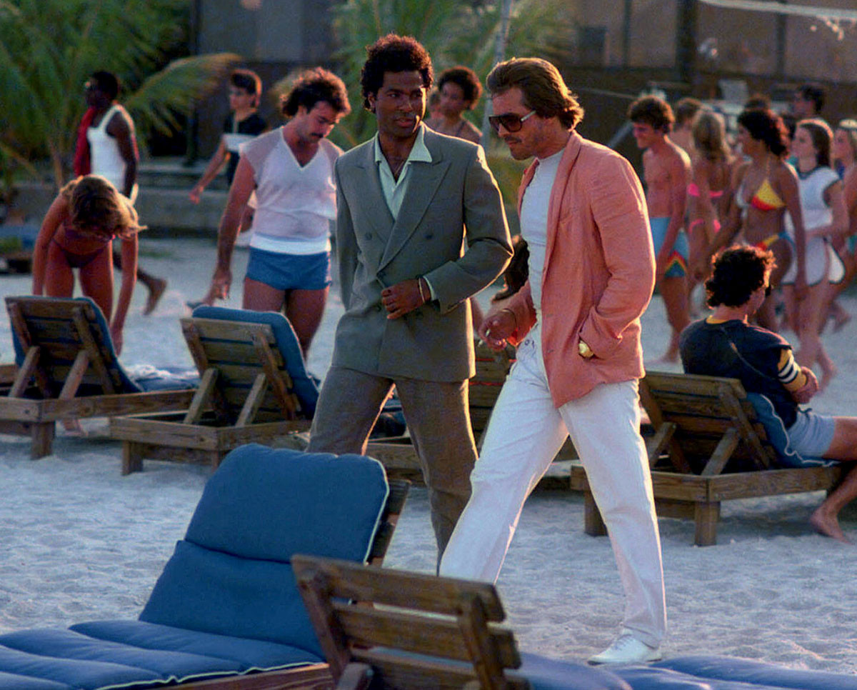 Никогда еще копы не были такими стильными, как в сериале “Полиция Майами” (1984–1989). Одетые по последней моде в наряды от Армани, Версаче и Хуго Босса, полицейские под прикрытием Крокетт и Таббс стали символом моды 80-х. Таббс (Филип Майкл Томас) и особенно Крокетт (Дон Джонсон) предпочитали преодолевать опасности и прожигать жизнь исключительно в крутых прикидах. Таббс — в классике, Крокетт — в повседневных легких пиджаках без подкладки, но с подплечниками. Он надевал их на футболки, умопомрачительно поддергивал рукава и никогда не носил носки. Спросите своего отца, наверняка он делал то же самое. Признайтесь — вы тоже. Хоть у нас и не Майами, но образы крутых копов обезоружили многих.