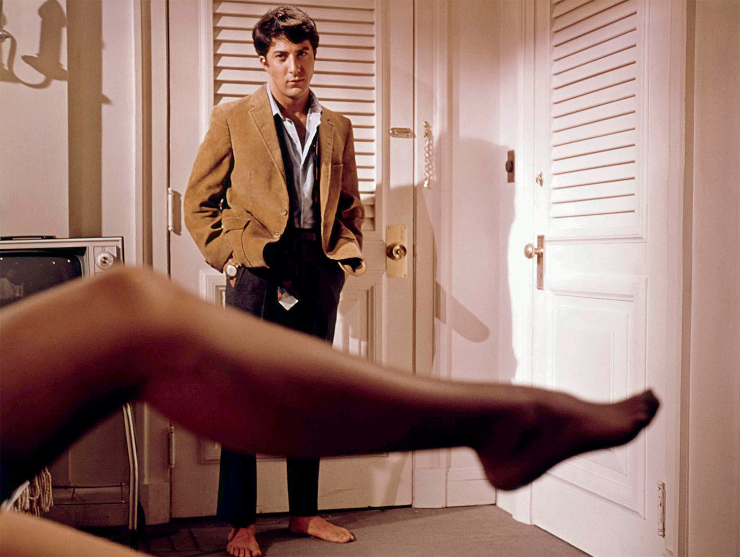Дастин Хоффман сыграл Бенджамена Брэддока в фильме 1967 года. Студентвыпускник, наивно влюбившийся в опытную женщину, и одет поначалу соответствующе. Однако по мере развития романа Бенджамен обретает уверенность в себе, становится раскованным. Он появляется на экране в майках, кроссовках и парках — и этот микс стилей Восточного и Западного побережий США до сих пор цитирует множество дизайнеров. А главное, та самая опытная соблазнительница вдруг становится всего лишь одним из аксессуаров Брэддока, пусть и самым главным для него.
