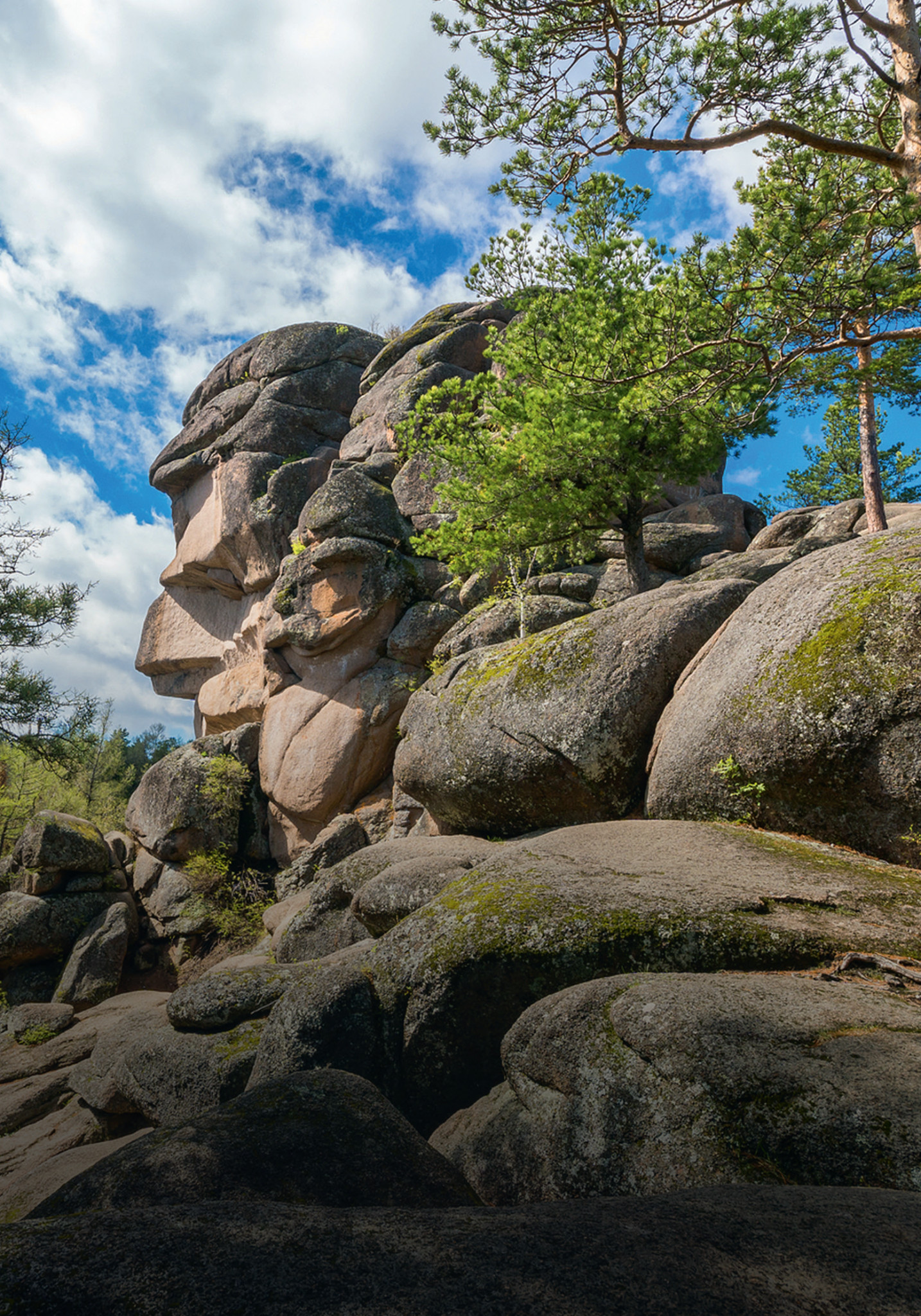 Скалы самых фантастических форм и внушительных размеров. Исполинский гном с айпадом, танцующий бегемот и женщина с головой-троллейбусом: воображение причудливым образом интерпретирует местные ландшафты. Высочайшая скала — Такмак, она уходит вверх на 540 метров. Жители Красноярского края еще пару веков назад создали почти что свою религию — столбизм. Так называют образ жизни, связанный со столбами, — скалолазание, трекинг и просто отдых на природе поблизости от могучих каменных столбов.