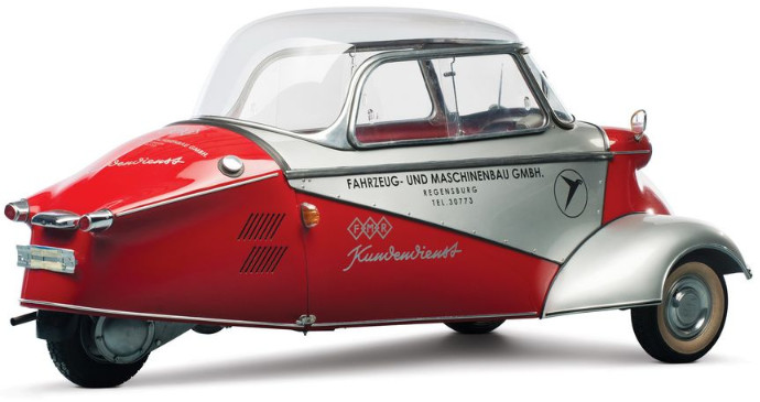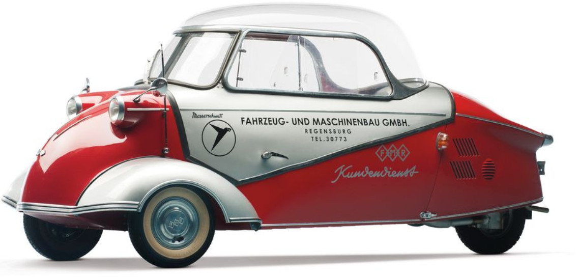 В это же время, бывший инженер люфтваффе Фриц Фенд организовал в Розенхайме выпуск трёхколёсной инвалидной мотоколяски Fend Flitzer, оснащённой расположенным сзади одноцилиндровым двигателем, объёмом 38 см3, от мотоцикла Victoria. Заметив, что его мотоколяска пользуется спросом среди малообеспеченных слоёв населения, Фенд обратился к Вилли Мессершмитту с предложением запустить на его заводе массовое производство таких микро-каров. Мессершмитт не стал лично принимать участие в проекте, но предоставил Фенду необходимое оборудование и разрешил использовать его имя. И в 1953 году на Женевском автосалоне была представлена первая модель марки Messerschmitt – KR175 (Kabinenroller-175), которая полностью соответствовала своему названию, потому что представляла собой трёхколёсный мотороллер с кабиной, похожей на «фонарь» истребителя.