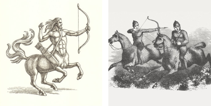 Кентавры пришли (точнее даже прискакали) к нам из древнегреческой мифологии. Их обычно представляли как созданий с головой и торсом человека на теле лошади. Согласно легендам, они жили в горах и лесах, а еще отличались очень буйным нравом. По предположению современных историков, их образ был срисован представителями народов, не знавших верховой езды, с кочевых всадников, например, скифов. Этим как раз и объясняется их агрессивный характер. А еще любовь кентавров к быкам. Дело в том, что для кочевников разведение крупного рогатого скота было одним из основных занятий.