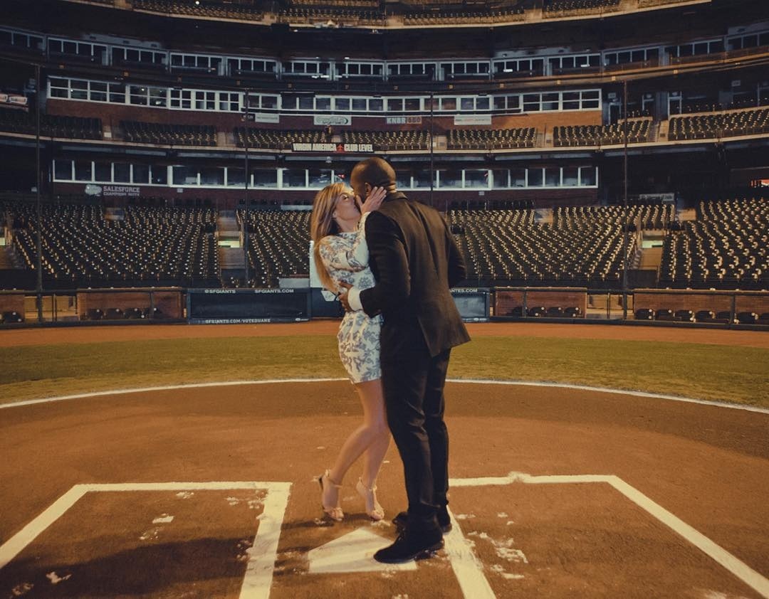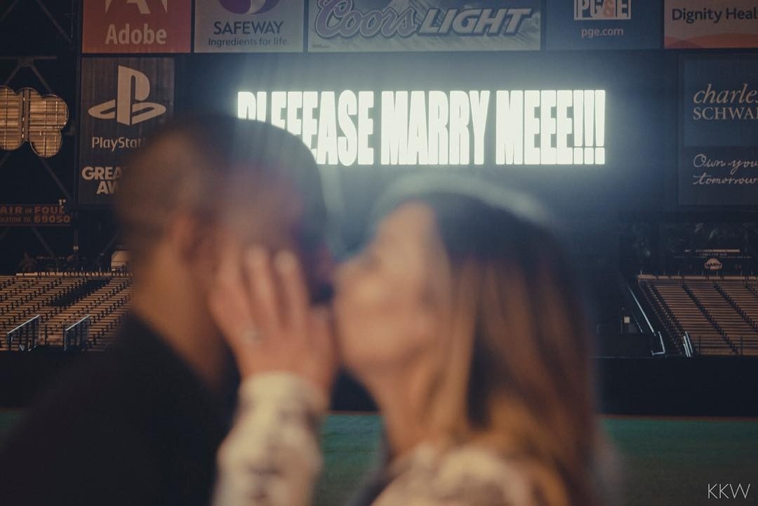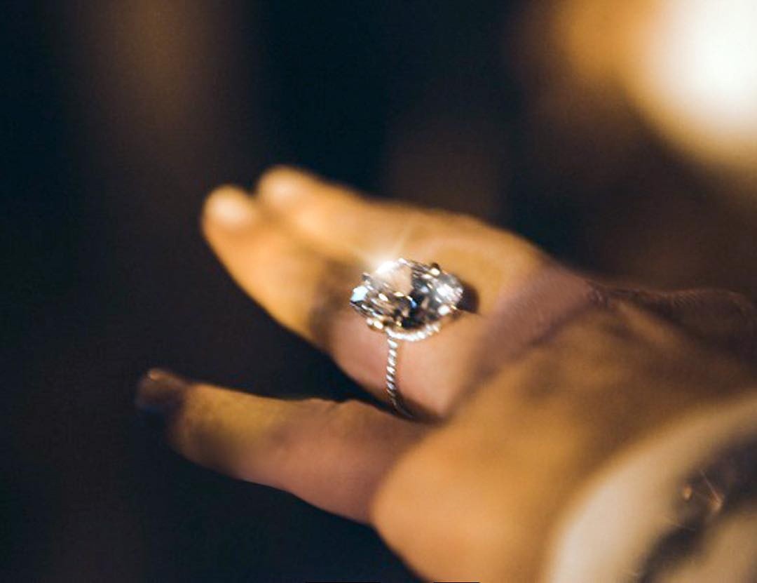 Рэпер Канье Уэст сделал предложение Ким Кардашьян в 2013 году в день ее рождения, 21 октября. Канье попросил руки у своей женщины в лучших традициях романтичных фильмов Голливуда: он арендовал стадион, пригласил туда оркестр, семью Ким и надел на палец любимой кольцо с бриллиантом в 15 карат ювелирного бренда Lorraine Schwartz. На табло светилась надпись «Пожалуйста, выходи за меня!».