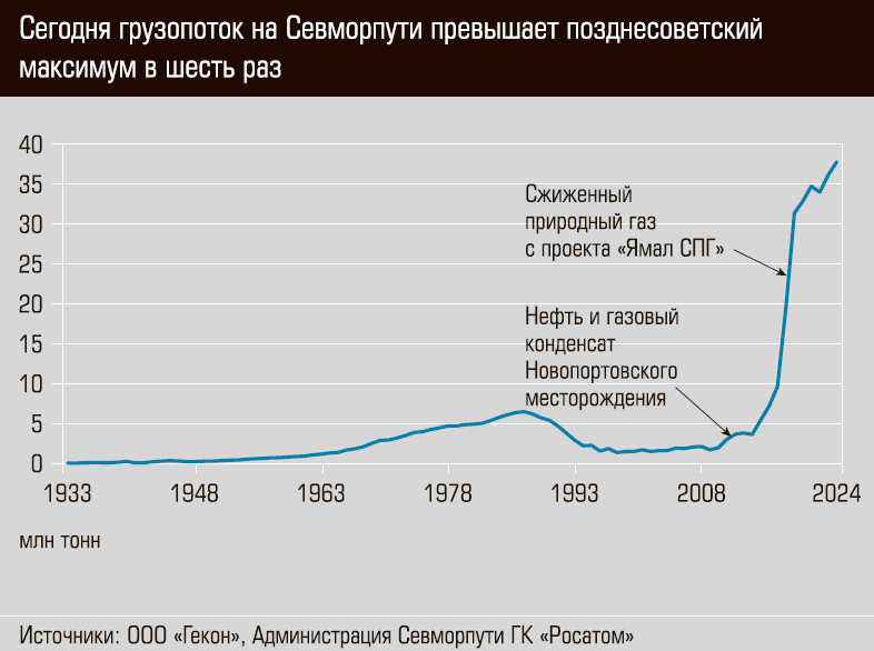 — Здесь никаких неожиданностей нет. Помесячная статистика показывает, что мы идем чуть хуже графика прошлого года. В целом по итогам 2024-го объем грузопотока по Севморпути составил 37,9 миллиона тонн, с небольшим приростом к 2023 году.